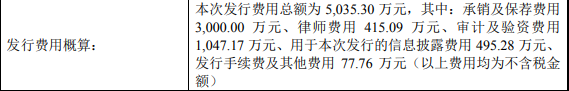 舒华体育本次上市发行费用为5035.30万元,其中保荐机构中信证券股份有限公司获得保荐承销费用3000万元。
