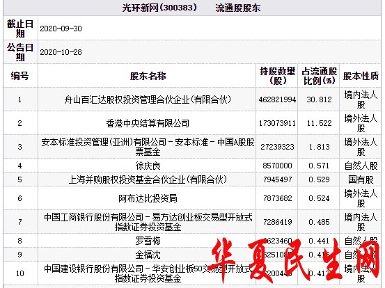 三季报显示,截至三季度末,中国工商银行股份有限公司-易方达创业板交易型开放式指数证券投资基金持有光环新网728.64万股,占流通股比例为0.485%,是其第七大流通股股东;中国建设银行股份有限公司-华安创业板50交易型开放式指数证券投资基金持有光环新网620.04万股,占流通股比例为0.413%,是其第十大流通股股东。