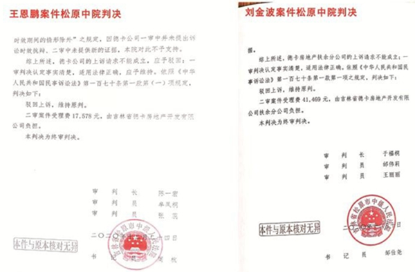 更为令人震惊的是,在吉林省高级法院和松原市中级法院已经做出生效判决,驳回112户的诉讼请求后,2021年4月21日,扶余法院又重新审理德卡城市广场二楼112户其中一户的代租合同纠纷案件,判决我公司败诉。扶余法院竟重复审理浪费法律资源,并且随意改判。现在德卡城市广场已经关停营业来应对官司。我们认为,这已经不仅仅是浪费司法资源和枉法裁判的问题了,简直就是对企业的围堵和谋杀!在如此恶劣的司法环境下,企业将如何生存?德卡公司为当地解决2000多人的就业难题,累计给当地创造了5000多万元的税收。但是,当地政府和法院却非要把企业赶尽杀绝!这是令人不能理解的。