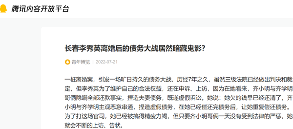 一桩离婚案,引发一场旷日持久的债务大战,历经7年之久,虽然三级法院已经做出判决和裁定,但李秀英为了维护自己的合法权益,还在申诉、上访,因为在她看来,齐小明与齐学明哥俩隐瞒全部还款事实,捏造夫妻债务,既遂虚假诉讼。她说:她欠的钱早已经还清了,齐小明与齐学明主观恶意串通,捏造虚假债务,在她已经偿还完债务后,让她重复偿还债务。为了打这场官司,她已经被搞得精疲力竭,但只要齐小明哥俩一天没有受到法律的严惩,她就会不断的上访、告状。