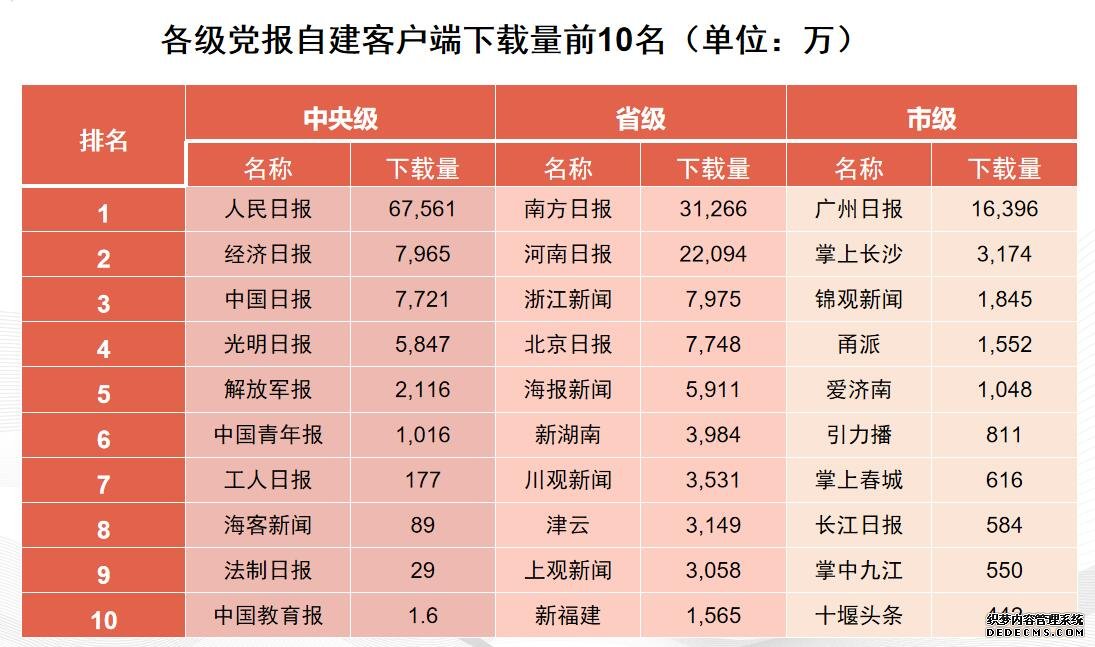 四、党报自有客户端的下载量大幅增长,地市级党报增长超3.5倍。