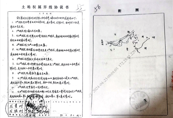 龙贵村老一队群众表示,2024年4月11日,我们的代表在涟源市档案馆找到两份山林所有证的存根,土地权属界限协议书写的清清楚楚。正因为有人伪造改动了山林所有证存根,原老龙踞村(五、九队)依据这一伪造的存根与杨岭山采石场签订土地租赁协议,领取本该属于我们队的土地使用租金。