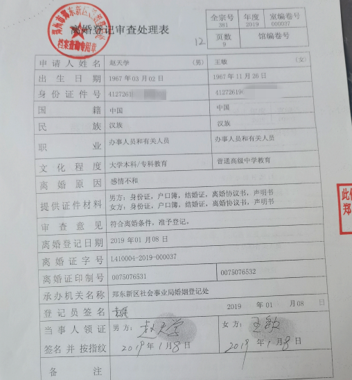 王律气愤地说:“不仅如此,回购案件执行时发现赵天学等几位被执行人名下均无财产,委托律师调查财产线索时发现,赵天学等几位公司主要实际控制人早在知情权与股权回购诉讼时,就于2018年10月至2019年1月间不约而同地离婚了,并且无一例外地将房产等主要财产分割给了配偶,自己承担债务。更为讽刺的是,股东孙善功本次离婚前刚与女方复婚不到半个月(2018年11月28日两人复婚,2018年12月10日两人离婚),这不是明显在转移财产嘛!”