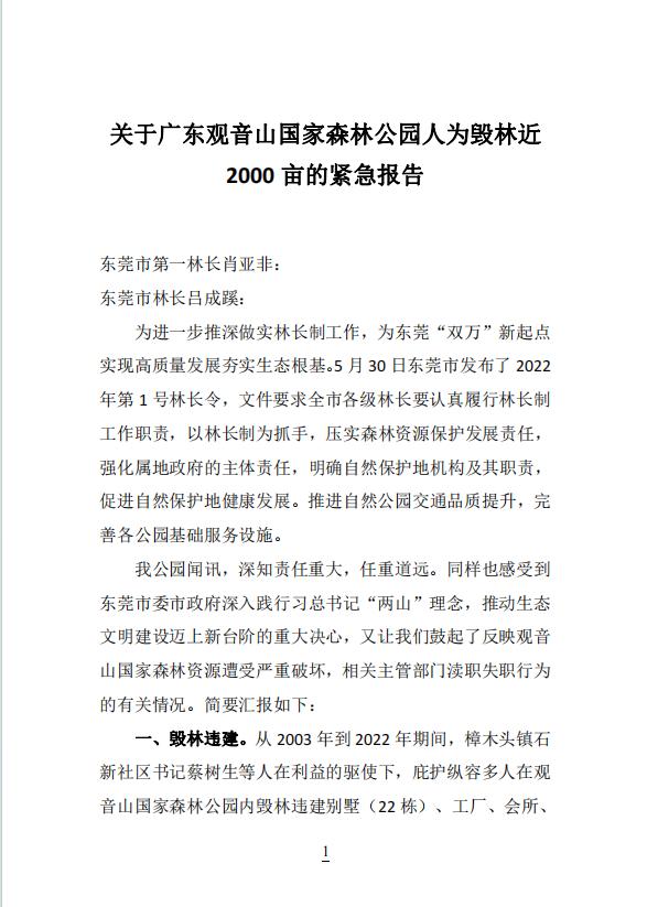 图片说明:观音山景区关于近2000亩原始次生林遭巨大毁林破坏的投诉举报。