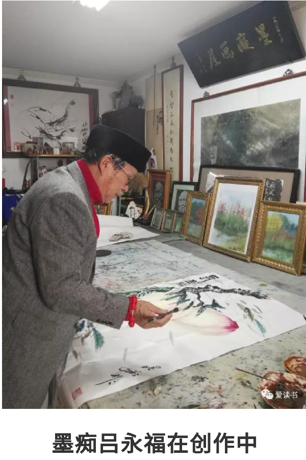 某些拜金思想日盛之人深知墨痴大师作品非一般可得,便想方设法索取画稿回去作伪,对这些人,大师一概回绝,拒之门外,而对慕名而来的普通人却欣然作画相送。善哉-----吕永福,善哉----墨痴大师。对祖国火热赤诚,对百姓平易近人,豪爽豁达,对他一生追求的绘画艺术衷爱痴迷“我依我法,艺无止境”是他信守的宗旨,他既不拘泥于前嫌的左右定势,更不玩弄笔墨,而是籍笔墨来表达一种更新的艺境,那就是飘逸美。为了飘逸美的最高境界,他正在攀登这个绘画艺术的顶峰。他的一首诗囊括了大师全部心声:“六十以前是学生,现在刚能乍乍行。八九十岁不算老,百年再唱夕阳红。”
