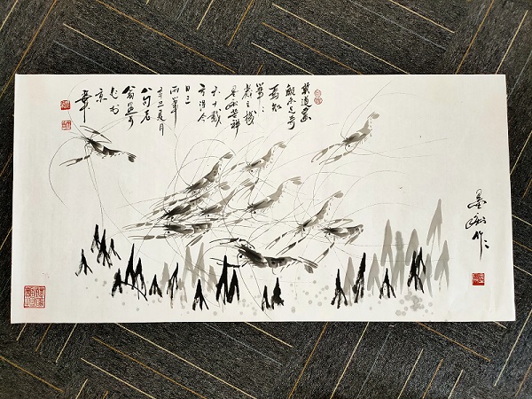 墨痴追求墨色至上,情感至上,意境至上,视觉至上,他用才情和修养,荡尽尘埃浊物,他充分利用造型本领,笔墨神韵,让每一笔都有出处,让每一笔都经得起推敲,让每一笔都能流传下去。他妙笔绘就的群虾,千姿百态,栩栩如生,灵动有趣,暗香涌动,呼之欲出,真正做到:一虾一神态,一虾一景观,一虾一妙韵。著名书法家米南阳先生曾作诗云:“白石画虾堪称雄,只惜不在人世中。天恐此技猷决断,再生墨痴我老兄。”他的画作在市场上很受欢迎,他都是客户至上,情意至高。