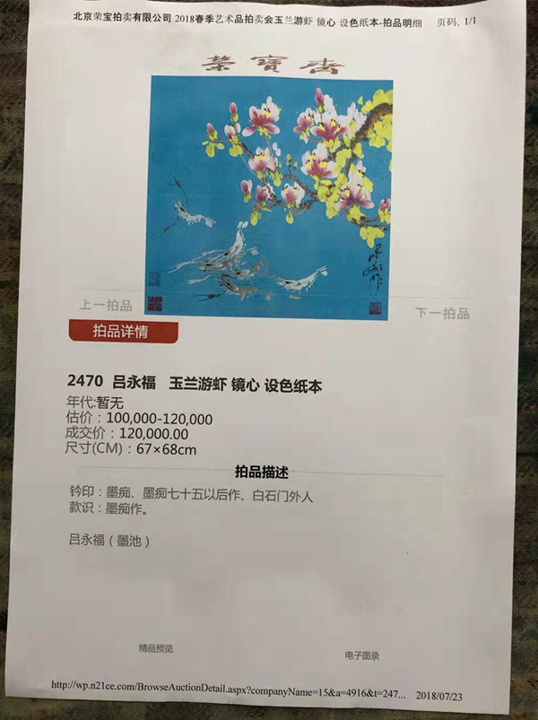 更有甚者,鉴赏大师史树青也亲自为他的《百虾图》题写“墨痴大师百虾图”之字,并又分别为他的两幅画作了题款:“墨痴先生写虾大有白石老人韵致,用墨深浅可分五色,白石不能为也”;“墨痴先生精于大幅,白石老人无此翰墨……”如此赞赏之词实在难以复加。