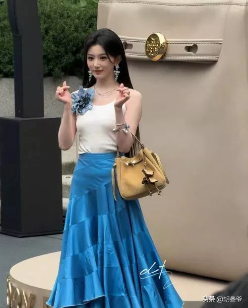 这次蓝色吊带裙贴身,把她过瘦的缺点无限放大,没有女性该有的柔美感,反而显得干瘪。
