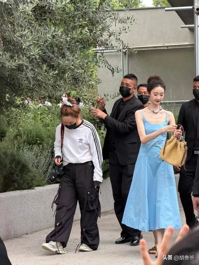 这次穿平底拖鞋,大概率也是为了迁就身边人,可牺牲了造型美感,实在有点得不偿失。