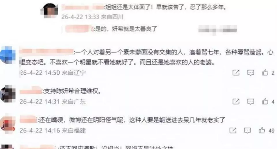 离婚后,陈妍希不再忍耐。 她正式委托北京星权律师事务所,对这位网暴她七年的黑粉提起了诉讼。