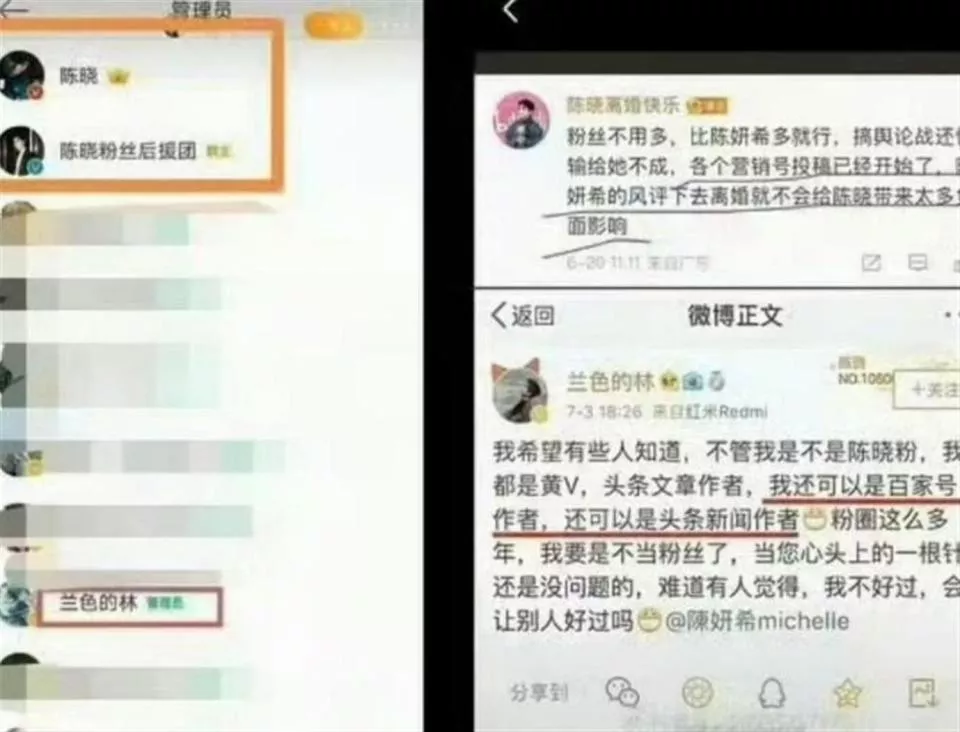 网友扒出的截图显示,这位黑粉与陈晓本人、陈晓的官方粉丝团同在一个社交群组内。
