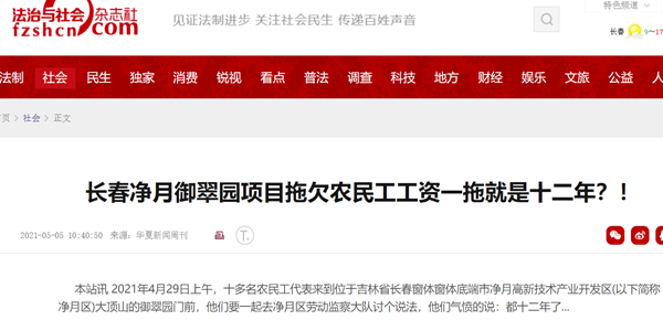 长春净月御翠园项目拖欠农民工工资一拖就是十二年?