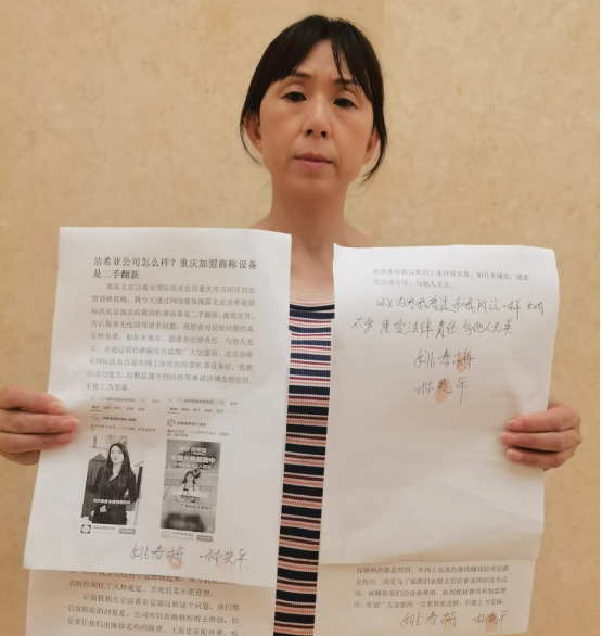 5、洁希亚公司怎么样?重庆加盟商怀疑设备是二手翻新