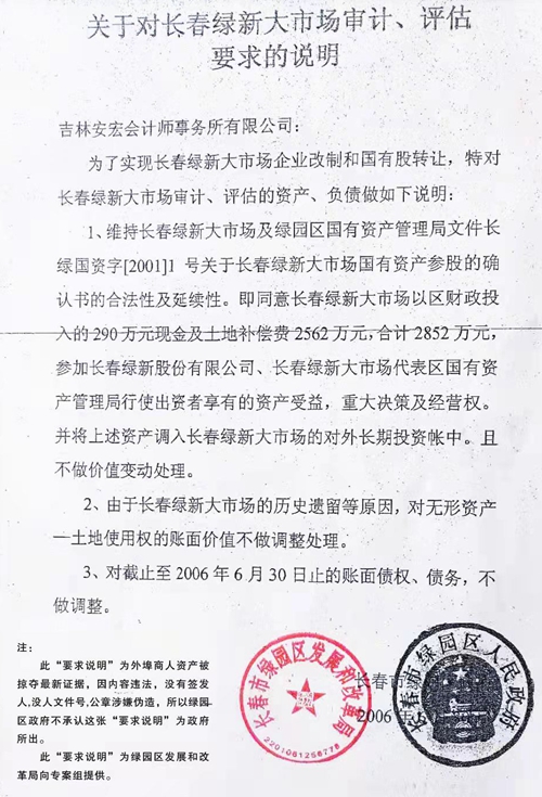 下附伪造的政府公文和公安厅公文,这份伪造政府说明,把本应数亿土地价要求不做调整,也就是以地价款为零出售,被他们侵吞了,从而造成巨额国有资产流失。